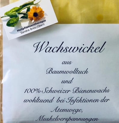 Die Bienenwachswickel werden in meiner Heilpflanzenwerkstatt in Thierachern hergestellt. Sie wirken wohltuend bei Infektionen der oberen Atemwege oder bei Muskelverspannungen am ganzen Körper.